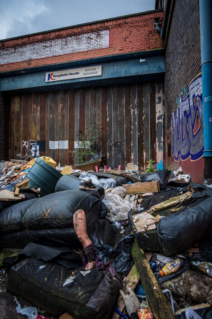 Mere moments later, three floors down and much crunching across, we’re back out on Warwick Street. Noises return, cars flash by, people and sky, normality restored for what that’s worth. It feels annoyingly loud and intrusive after the hush of Kingfield Heath. It’s just a building after all, easily entered and right there in the City, you can literally walk the fuck in. We didn’t have to climb or crawl, no safety jacket required. Yet it felt otherworldly, I can’t properly explain without sounding ridiculous or romantic. That firedoor felt like a portal, entering into a dystopian Narnia, fraught with destruction and nihilistic woes. It was oddly magical too, but it’s bloody easy to say that isn’t it, I’m a vicarious visitor, not a denizen bound to weals of addiction.