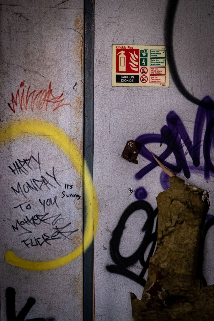 However, this week I thought I’d take a step sideways. Those of you who know me, will be aware that I enjoy shooting the grimier side of life, and that I spend a lot of my time looking at places that have been left behind, forgotten about. Leftover spaces, empty places and urban wildernesses. I’m not unique in this, there’s plenty of folk who enjoy these places and write or photograph them far more eloquently than I. The abandoned, the derelict, the trashed and the ruins. The desire to explore such spaces has spawned a plethora of YouTube channels and Instagram feeds, all themed around the on-trend nominate ‘Urbex’ or ‘Urban Exploration’. There’s plenty of good Peeps out there getting their freak on urbexing regularly, properly equipped, gripped and sorted, check them out on the Tube of You if you want to see how it’s done well.