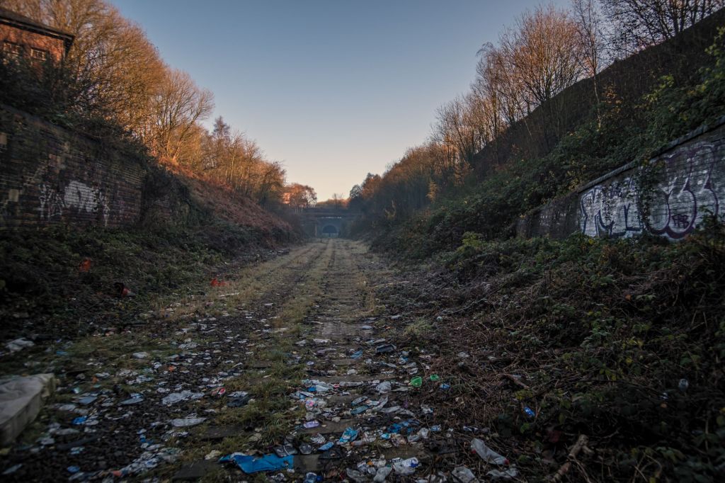 I mostly used my wide angle lens down there, trying to capture the sheer size of the spaces whilst grabbing detail and leading the eye. It’s hard not to ponder what was, the busyness of industry as trains thundered through. Sadly there’s so little left of any railway infrastructure, just the odd piles of concrete sleepers. I have a good imagination though, I think about the smells and sounds, oily coals, clattering trucks and screeching rails. It’s a good diversion from the current nostril posies of urine and rot. Aside from the ivy trembling against the wall there’s little in the way of reclaimed nature down here, this place is too corrupted, poisoned by our plastic excesses.
